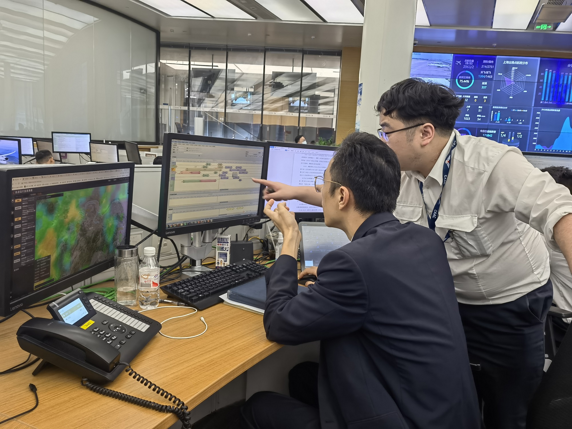 旺季的航班生產(chǎn)量大,夏季各種臺(tái)風(fēng)、雷雨等惡劣天氣發(fā)生頻率又高,再加上航班運(yùn)行容易受到流控等方方面面的影響,不正常航班和應(yīng)急事件會(huì)比日常多。這時(shí),東指中心的存在就猶如一個(gè)“CPU”,對(duì)各種情況進(jìn)行分析、預(yù)案、決策,同時(shí)協(xié)調(diào)、指揮著各專(zhuān)業(yè)崗位“分工合力、齊頭并進(jìn)”,好讓數(shù)千個(gè)航班有序運(yùn)行。