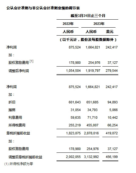 ? 調(diào)整后凈利潤(rùn)[2]為人民幣1,919.8百萬元(279.5百萬美元),較2022年同期的人民幣1,054.5百萬元增長(zhǎng)82.1%。