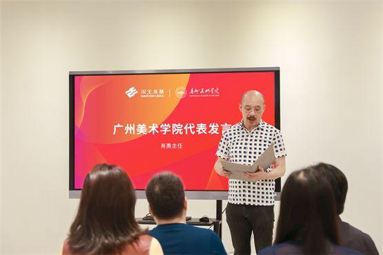 漢王友基品牌總監(jiān)羅銳鋒則簡要介紹了漢王友基的企業(yè)發(fā)展理念、愿景及產(chǎn)品發(fā)展布局。他表示,漢王友基高度重視此次與廣州美術(shù)學院的合作,希望能夠依托廣美在人才培養(yǎng)、優(yōu)質(zhì)資源聚集、學科專業(yè)特色等多方面的影響力,發(fā)揮漢王友基在數(shù)字手寫領(lǐng)域的產(chǎn)業(yè)實力,雙方以共建實驗教育基地為契機,打開校企結(jié)合的新局面,為數(shù)字手寫領(lǐng)域的發(fā)展注入全新活力。