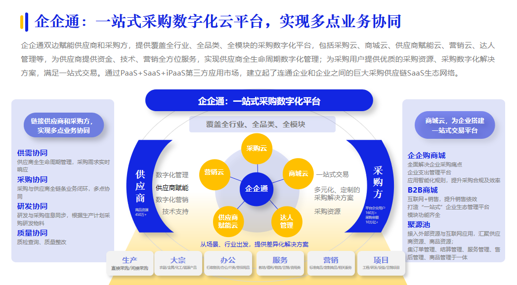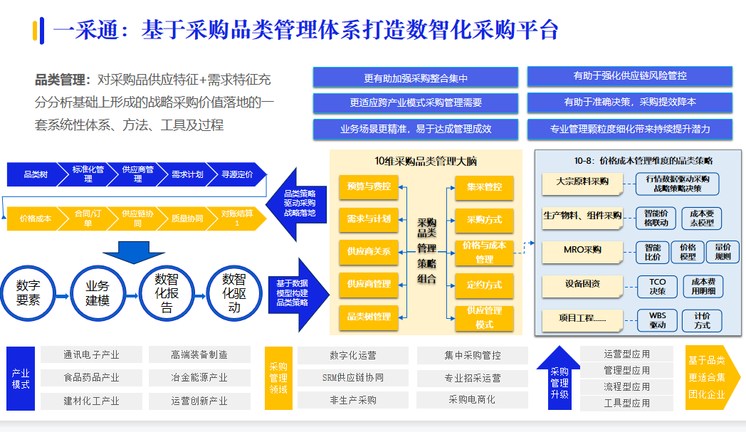 還有一采通,基于采購(gòu)品類管理體系,打造了數(shù)智化采購(gòu)平臺(tái)。