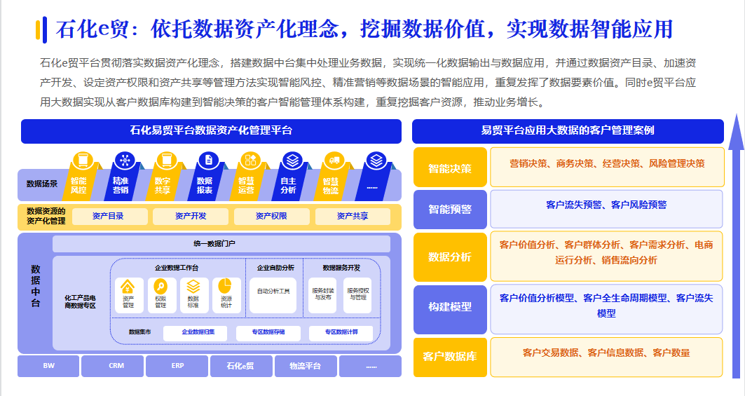 數(shù)字化采購(gòu)帶來(lái)三大供應(yīng)鏈模式變革:商業(yè)模式、管理模式和服務(wù)模式。核心企業(yè)依托資源聚集優(yōu)勢(shì),將其資源整合能力和管理能力向外開(kāi)放和輸出,提供開(kāi)放的平臺(tái),實(shí)現(xiàn)盈利,引起商業(yè)模式變革;同時(shí),數(shù)據(jù)價(jià)值逐漸被釋放,實(shí)現(xiàn)數(shù)據(jù)驅(qū)動(dòng)的供應(yīng)鏈管理模式的變革;例如:石化e貿(mào)落實(shí)數(shù)據(jù)資產(chǎn)化理念,搭建數(shù)據(jù)中臺(tái)集中處理業(yè)務(wù)數(shù)據(jù),實(shí)現(xiàn)數(shù)據(jù)智能應(yīng)用。