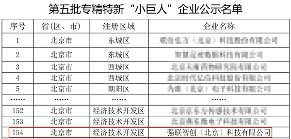 7月14日,北京市經信局發(fā)布第五批專精特新‘小巨人’企業(yè)公示名單,強聯智創(chuàng)?等243家企業(yè)上榜。