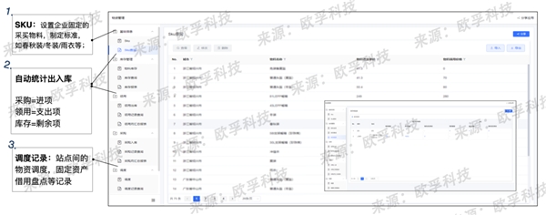 歐孚科技運(yùn)用低代碼技術(shù)搭建了“物資進(jìn)-出項“管理模塊。該模塊包括搭建SKU庫,對物資物料進(jìn)行統(tǒng)一定義;配置采購調(diào)度的表單公式,使區(qū)域站點能根據(jù)實際領(lǐng)用情況進(jìn)行填寫;根據(jù)各站點領(lǐng)用數(shù)據(jù),快速統(tǒng)計物料成本并進(jìn)行庫存盤點管理。