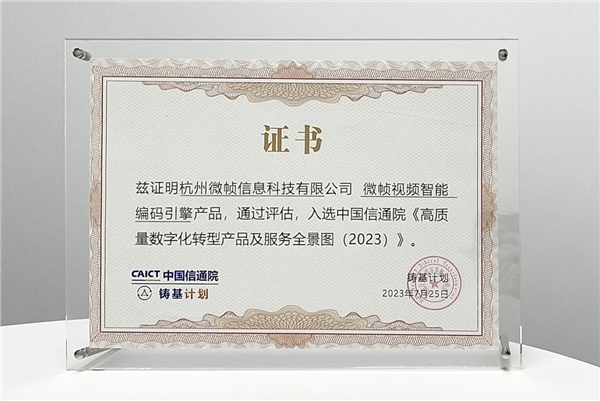7月27日,由中國信通院主辦的“2023數(shù)字生態(tài)發(fā)展大會”暨中國信通院“鑄基計劃”年中會議在北京召開。本次大會全面總結(jié)了“鑄基計劃”上半年度工作成果,并重磅發(fā)布了《高質(zhì)量數(shù)字化轉(zhuǎn)型產(chǎn)品及服務(wù)全景圖(2023)》。微幀科技作為全球領(lǐng)先的視頻編碼及AI解決方案提供商受邀出席會議,【微幀視頻智能編碼引擎】以行業(yè)領(lǐng)先的編碼性能、不斷突破技術(shù)極限的自研能力,實力入選全景圖。