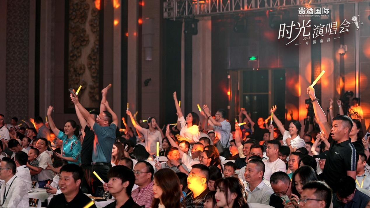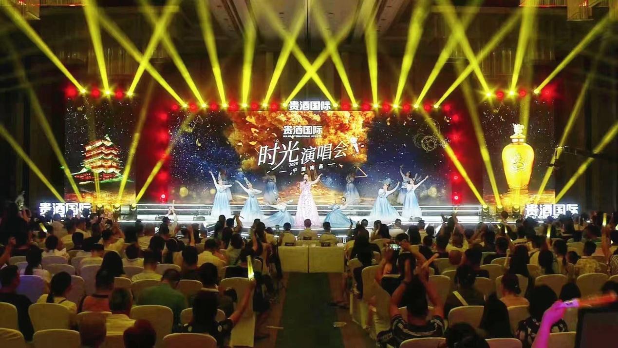 2023年8月4日,貴酒國際攜手跨時代音樂人,在南昌燃情舉行《時光演唱會》。充滿魅力的金色光影流動,幽雅酒香與動人樂曲交織,共同續(xù)寫華彩的音樂篇章。華燈初上,晚二十點整,貴酒國際《時光演唱會》準時拉開帷幕,在南昌香格里拉帶各位嘉賓重回盛世芳華的演唱會。