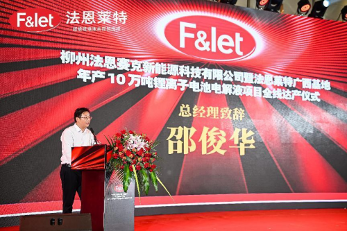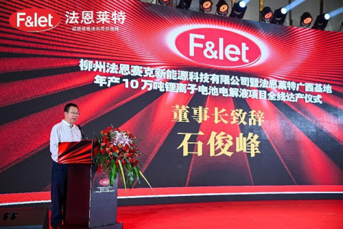 儀式上,法恩萊特邵俊華總經(jīng)理在致辭表示:柳州法恩賽克項(xiàng)目不僅是法恩萊特在華南區(qū)域作出的重大戰(zhàn)略部署,更是法恩萊特面向全球布局的重大舉措。法恩萊特將以此次項(xiàng)目全線(xiàn)達(dá)產(chǎn)為新的起點(diǎn),發(fā)揮公司的技術(shù)、戰(zhàn)略、規(guī)模和品牌等優(yōu)勢(shì),深耕細(xì)作新能源鋰電池行業(yè)材料電解液市場(chǎng),深化新能源鋰電池行業(yè)更大范圍、更寬領(lǐng)域的務(wù)實(shí)合作,為新能源汽車(chē)、儲(chǔ)能系統(tǒng)、消費(fèi)電池客戶(hù)提供更具優(yōu)勢(shì)、更高性能的超級(jí)鋰電池電解液解決方案,為新能源行業(yè)的持續(xù)創(chuàng)新貢獻(xiàn)更多力量。