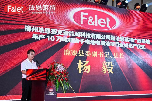 8月5日,柳州法恩賽克新能源科技有限公司暨法恩萊特廣西基地年產(chǎn)10萬(wàn)噸鋰離子電池電解液項(xiàng)目全線(xiàn)達(dá)產(chǎn)儀式在廣西柳州盛大舉行。柳州市人民政府副市長(zhǎng)湯振國(guó),鹿寨縣人民政府縣長(zhǎng)楊毅,法恩萊特公司董事長(zhǎng)石俊峰,總經(jīng)理邵俊華等出席儀式,共同見(jiàn)證這一重要時(shí)刻。