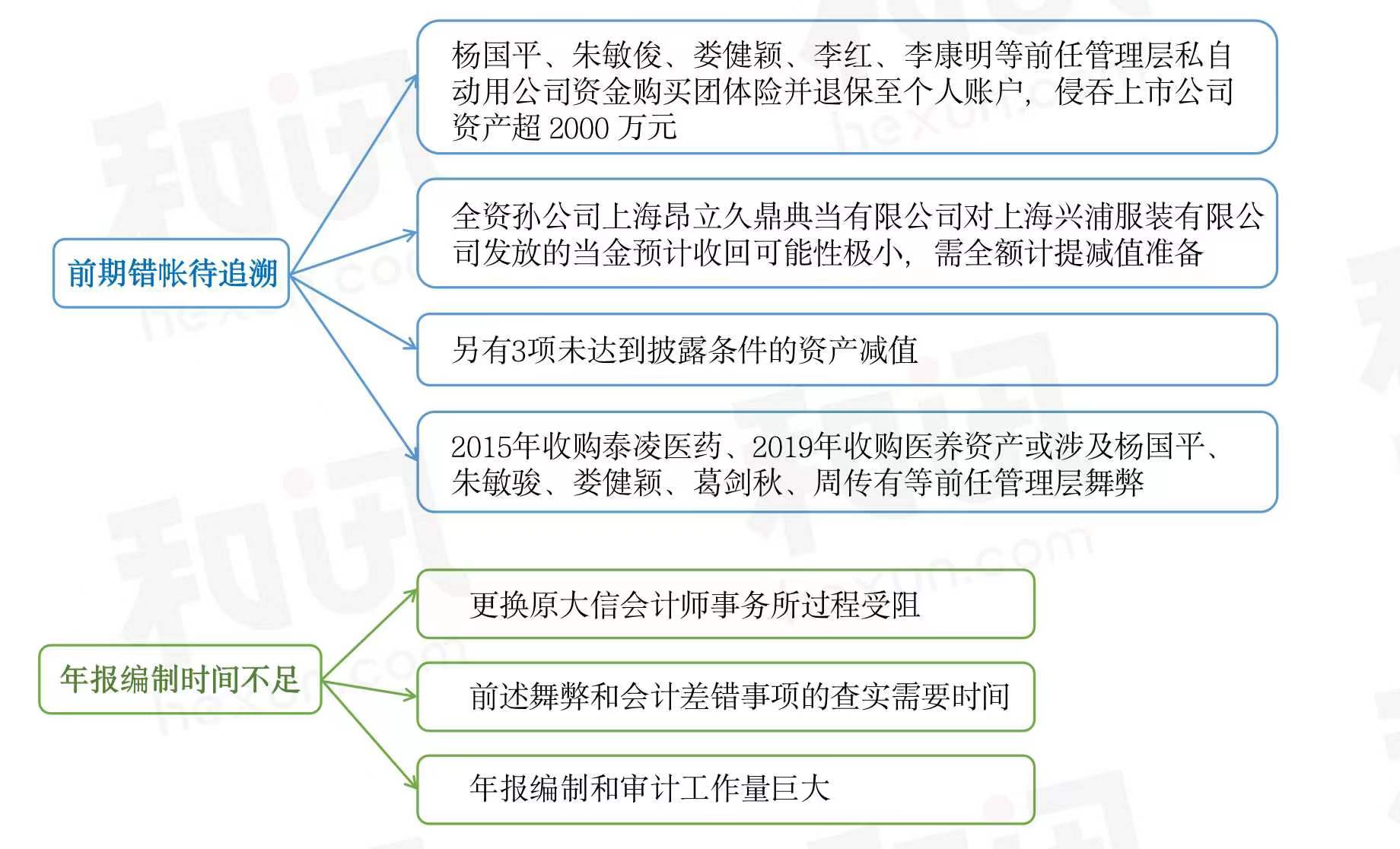 對于此,交大昂立財務(wù)經(jīng)理盛宇立則在4天后的媒體溝通會首次回應(yīng):“公司之所以未能如期出具年報,核心原因是有大量前期錯帳進(jìn)行追溯,導(dǎo)致年報編制及審計的時間不足?!?#xff08;具體如圖)