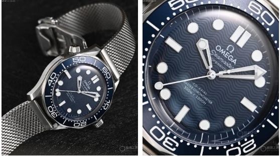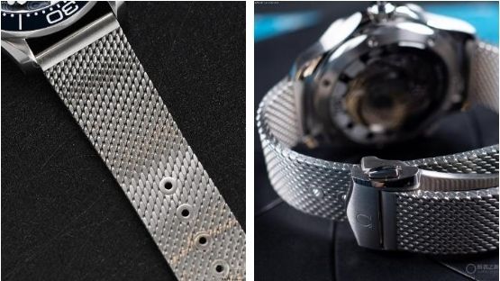 海馬300米“詹姆斯·邦德60周年紀(jì)念款”腕表可配備網(wǎng)狀表鏈或者NATO表帶。自從2019年,歐米茄海馬300米“007無暇赴死”開始,網(wǎng)狀表鏈和NATO表帶開始進(jìn)入到海馬300米系列中。特別是網(wǎng)狀表鏈和海馬300米表頭組合,在增強(qiáng)復(fù)古風(fēng)格的同時,已經(jīng)成為了歐米茄海馬300米特殊款的一大特征,具有極高的識別度。