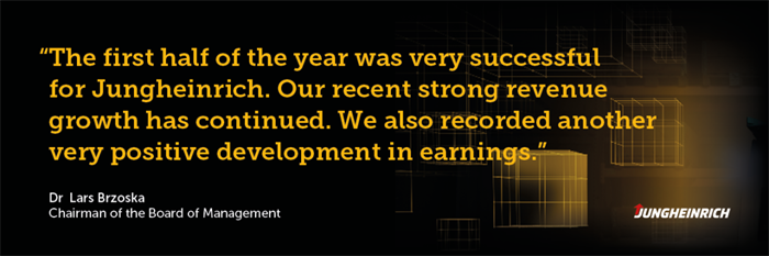 永恒力集團(tuán)董事會(huì)主席Lars Brzoska博士解釋道:“今年上半年對(duì)永恒力而言可謂碩果累累。我們延續(xù)了近期營(yíng)業(yè)收入強(qiáng)勁增長(zhǎng)的勢(shì)頭。增幅達(dá)到了46%,我們?cè)谟矫嬖俅螌?shí)現(xiàn)了極為喜人的增長(zhǎng)。通過(guò)收購(gòu)Storage Solutions集團(tuán),我們?cè)诿绹?guó)貨架系統(tǒng)和倉(cāng)儲(chǔ)自動(dòng)化領(lǐng)域贏得了一個(gè)重要的增長(zhǎng)點(diǎn)。這一點(diǎn)目前已首次體現(xiàn)在集團(tuán)的合并財(cái)務(wù)報(bào)表內(nèi)。我們繼續(xù)推進(jìn)實(shí)施2025+戰(zhàn)略,并確認(rèn)本年度的預(yù)測(cè)數(shù)據(jù)。永恒力已經(jīng)為迎接未來(lái)做好了充分的準(zhǔn)備。”
