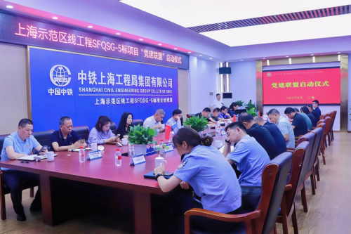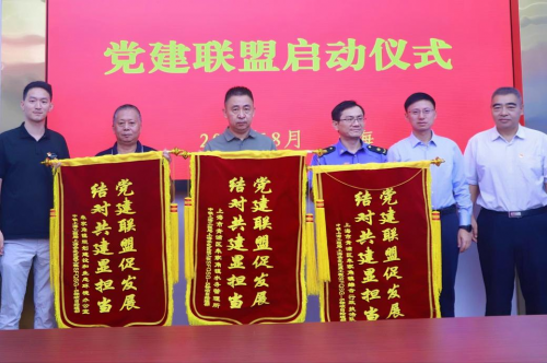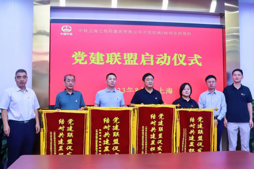 啟動(dòng)儀式現(xiàn)場(chǎng),青浦區(qū)朱家角鎮(zhèn)黨委委員王磊,中鐵上海工程局集團(tuán)有限公司城建分公司黨委副書記、工會(huì)主席張文續(xù),上海申鐵投資有限公司項(xiàng)目經(jīng)理何喬石現(xiàn)場(chǎng)為各聯(lián)建單位授予“黨建聯(lián)盟促發(fā)展,結(jié)對(duì)共建顯擔(dān)當(dāng)”錦旗,并共同見證上海示范區(qū)線5標(biāo)項(xiàng)目部與各單位締結(jié)《黨建聯(lián)建協(xié)議書》。據(jù)了解,聯(lián)盟成立后,各聯(lián)建單位將相互交流黨建工作經(jīng)驗(yàn),共同開展黨建共建活動(dòng),通過推進(jìn)區(qū)域化黨建,盤活黨組織力量資源,實(shí)現(xiàn)黨建與生產(chǎn)深度融合,以高質(zhì)量黨建引領(lǐng)高質(zhì)量發(fā)展。
