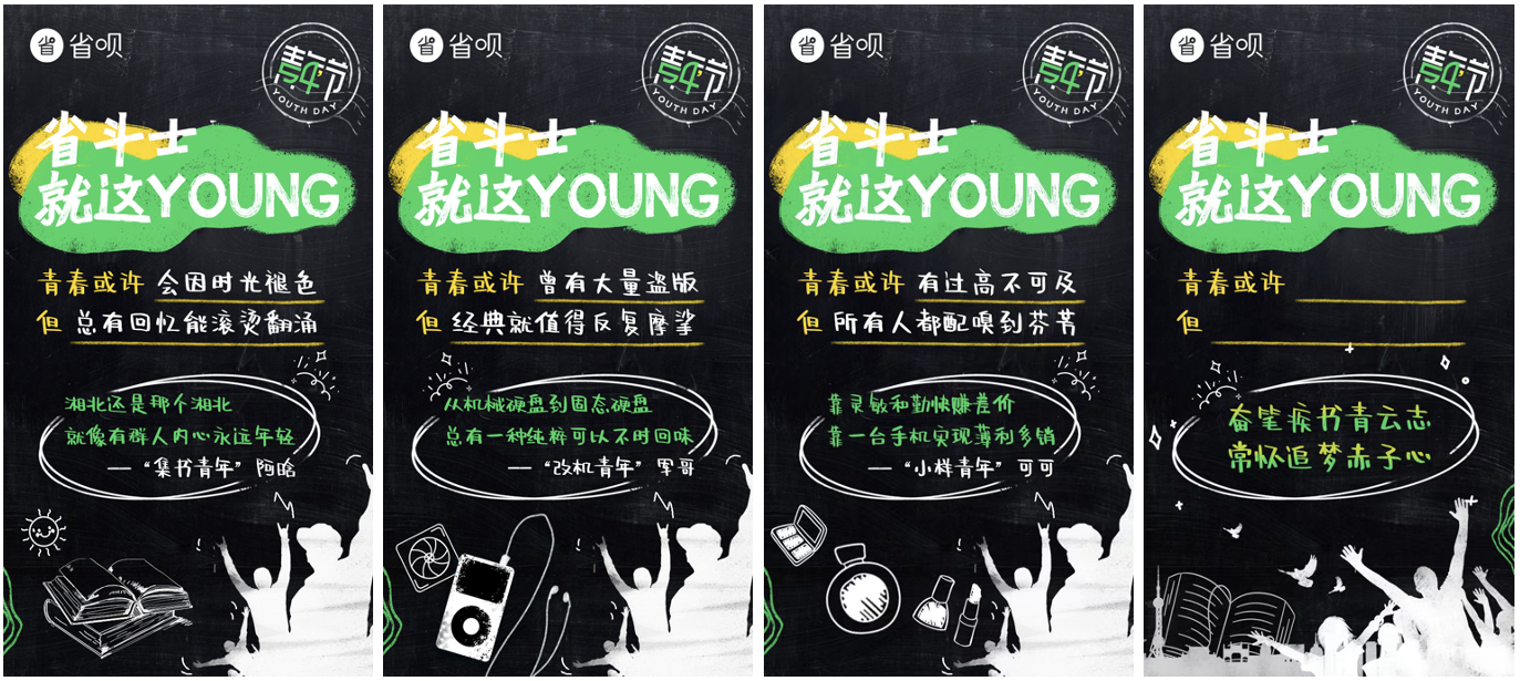 風(fēng)好正是揚(yáng)帆時(shí),策馬揚(yáng)鞭再奮蹄。和集書(shū)青年阿晗、改機(jī)青年軍哥、小樣青年可可這樣將愛(ài)好做成生意的人還有很多,他們也是無(wú)數(shù)年輕追夢(mèng)人的代表,有著這個(gè)時(shí)代后浪群體的可貴品質(zhì)。恰逢五四青年節(jié),數(shù)字化優(yōu)惠服務(wù)平臺(tái)省唄也為這些年輕的“省斗士”歡呼喝彩,一組#省斗士 就這YOUNG#的海報(bào),不僅描繪出上述青年代表的風(fēng)貌,還以“青春或許_______,但_______”的句式引發(fā)網(wǎng)友的共鳴,激發(fā)年輕人表達(dá)內(nèi)心炙熱,以真誠(chéng)博取喝彩與鼓勵(lì)?!扒啻夯蛟S稍縱即逝,但造就了全新的自己”、“ 青春或許是這白開(kāi)水一樣淡的日子,但更多的還是相互成就和相互溫暖”、……短短半天不到,話(huà)題閱讀量就已突破1600萬(wàn)。