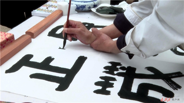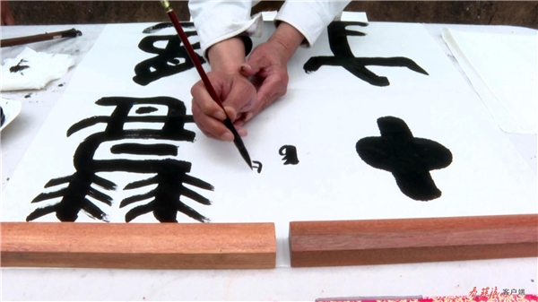 在農(nóng)家小院,閻正正在聚精會神地?fù)]毫潑墨,他在筆墨的運(yùn)用上別出心裁、匠心獨運(yùn),流暢的線條蒼勁有力,書法作品淋漓盡致地展現(xiàn)于尺幅之上。談起他創(chuàng)作的靈感,閻正說,“莊浪歷史悠久、文化底蘊(yùn)深厚、森林植被覆蓋率高,儼然一幅天然山水畫。莊浪縣云崖寺自然風(fēng)光秀麗,石窟藝術(shù)精美,有遠(yuǎn)山、有水庫、有寺廟,它完全具備中國畫的每一個條件。”