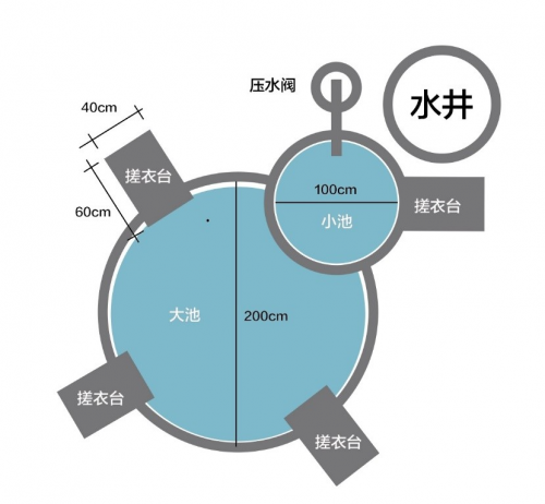 這個(gè)由專業(yè)人員設(shè)計(jì)的洗衣池使用的是旁邊一口老井的清潔水源,冬暖夏涼。由于設(shè)計(jì)巧妙,水流還可以在洗衣過(guò)程中多次利用。同時(shí),四個(gè)帶有石制搓板的洗衣位均勻分布在洗衣池的周圍,充分照顧了村民們的社交需求,一邊洗衣服一邊聊天輕松愜意。