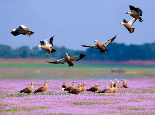 鄱陽(yáng)湖過(guò)冬的赤麻鴨(攝影/楊帆,都昌縣候鳥(niǎo)自然保護(hù)區(qū)管理局提供)