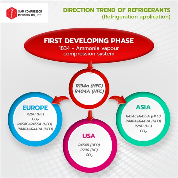 人工制冷始于 17世紀(jì)50 年代中期,1834 年第一個(gè)使用氨的工作蒸汽壓縮系統(tǒng)面世。另一方面,氨有毒且對(duì)健康有害。 直到今天,科學(xué)家們?nèi)栽诶^續(xù)開(kāi)發(fā)和研究更好的制冷劑。 由于制冷劑在每個(gè)國(guó)家/地區(qū)的使用方式不同,為了提供清晰的解釋,我們將按國(guó)家/地區(qū)組對(duì)這些趨勢(shì)進(jìn)行細(xì)分。