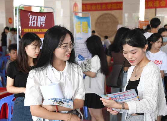 7月2日,廣西國(guó)際商務(wù)職業(yè)技術(shù)學(xué)院學(xué)生在校園雙選會(huì)上求職。新華社記者 周華 攝