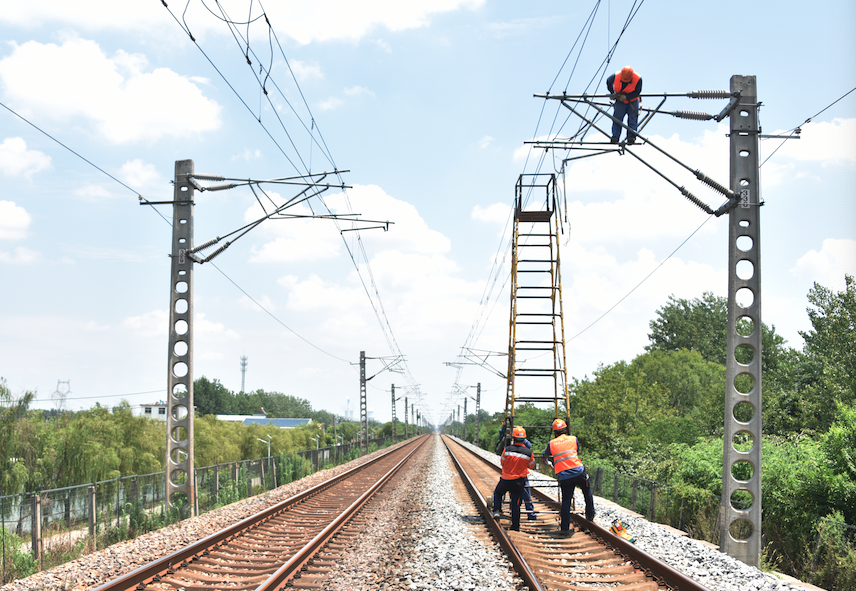 11點55分,封鎖命令一下,劉冉一馬當先帶著大家沖到了線路上。由于鐵路線兩邊幾乎沒有任何遮陽的物體,經(jīng)過一上午的暴曬,鐵路線上的溫度已經(jīng)高達49.8℃,而現(xiàn)在頭頂上的太陽任然不斷地給鐵路上的道砟加熱,此時的鐵路線上,就像是一個巨大的烤箱。劉冉看著遠處地面上的熱浪,拽了拽濕透后緊貼后背的衣服,招呼著后面的員工“大家動作快點,天窗只有109分鐘,不僅要檢修500米的設(shè)備,還要處理3處缺陷。”
