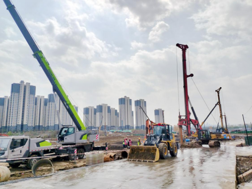 截至目前,項目前期四證已辦理完成,臨時用水接駁施工、圍擋施工、沖洗平臺搭建、臨電供電配置、支護樁及工程樁施工已基本完成,目前正在進行主樓土方開挖和塔吊安裝工作。