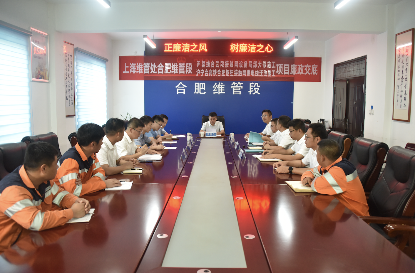8月24日上午,中國中鐵電氣化局運管公司上海維管處合肥維管段對合肥維管段滬蓉線合武段接觸網(wǎng)設備局部大修施工項目和滬寧合高鐵合肥樞紐接觸網(wǎng)供電線遷改施工項目進行黨風廉政交底。單位各級領(lǐng)導和工程項目關(guān)鍵崗位人員共計19人參加廉政交底會議。