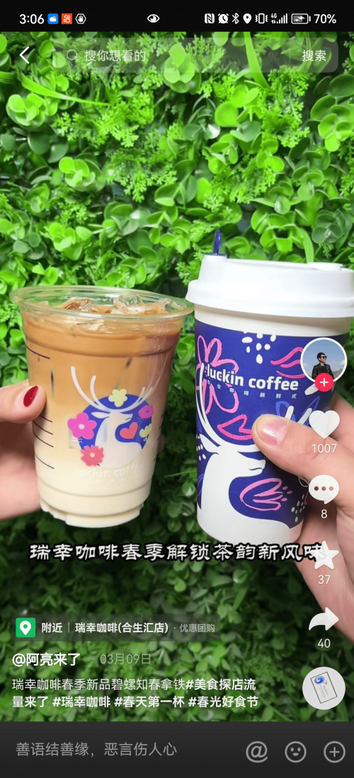 咖啡品類更是春日營銷的主力軍,3 月 6 日,瑞幸官宣新品「碧螺知春拿鐵」,新品與被譽為「鄉(xiāng)村超?!沟年懴扇撕献鳌T谛缕吠平檫^程中,瑞幸不僅將直播間搬到了生茶園,打造沉浸式的直播體驗,讓用戶在觀看直播享受“寵粉式”福利的同時,感受到濃濃的春日氛圍感。不僅如此,瑞幸邀約了一萬名LV3以上的短視頻達人,借助帶貨達人力量為瑞幸茶咖季種草引流,引發(fā)站內(nèi)視頻投稿數(shù)4.7萬條。同期,瑞幸咖啡篩選了33位直播達人,在多城市開展了“瑞幸茶咖季”為主題的系列達人直播,通過直播達人承接品牌官方自播熱度和流量?!复汗夂檬彻?jié)」?fàn)I銷節(jié)點中,通過短視頻種草、官方直播及達人直播,以一系列別具一格的“茶咖大秀”實現(xiàn)破圈層營銷,迅速完成種草全網(wǎng),最終獲得破億的支付GMV。