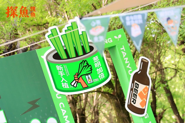 此外,露營活動(dòng)現(xiàn)場(chǎng)還搭建“探魚品牌時(shí)光墻”,清晰呈現(xiàn)出探魚品牌成立至今的點(diǎn)點(diǎn)滴滴,將一個(gè)有趣的品牌形象變化歷程,完整地展現(xiàn)在來賓面前?;顒?dòng)中,探魚還準(zhǔn)備了各種趣味游戲,包括搖骰子入座、大撲克游戲、蔥蔥聯(lián)名種子卡體驗(yàn),還有探魚周邊盲盒、大魚樂撲克牌等精美禮品。多種在露營場(chǎng)景下的趣味活動(dòng),調(diào)動(dòng)著現(xiàn)場(chǎng)來賓們的感官和興趣,露營氛圍和新品美食,都在這一刻拉近了品牌與用戶的距離,向各位美食愛好者傳遞有趣的品牌能量。