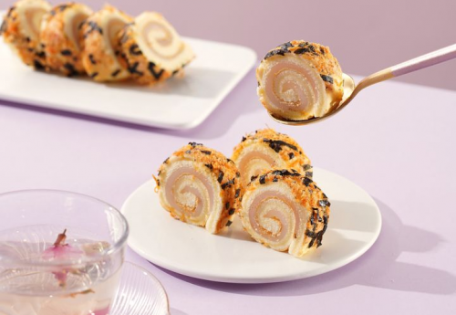 盼盼肉松海苔戚風(fēng)卷,不愧是盼盼食品深耕烘焙產(chǎn)品的又一力作!外面滿滿的一層肉松與海苔,這絕妙搭配,讓整塊蛋糕卷的風(fēng)味更上一個(gè)臺(tái)階!恰到好處的咸香口味,中和了甜點(diǎn)本會(huì)有的甜膩。第一眼看到松軟又帶有淡淡油潤的肉松上鋪著微脆的小片海苔,松軟鮮香,好吃又不膩,讓人忍不住深入挖掘,一探究竟!