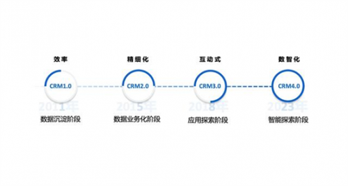 南訊向36氪展示了產(chǎn)品和服務(wù)的迭代升級(jí),作為助力品牌連接用戶的紐帶,在不斷進(jìn)化的十三年時(shí)間里,南訊圍繞ToC領(lǐng)域CRM的進(jìn)化過程,將CRM從1.0到4.0總結(jié)為:數(shù)據(jù)沉淀階段、數(shù)據(jù)業(yè)務(wù)化階段、應(yīng)用探索階段、智能探索階段,并且提煉出了4個(gè)發(fā)展階段的核心要點(diǎn):效率、精細(xì)化、互動(dòng)式、數(shù)智化。