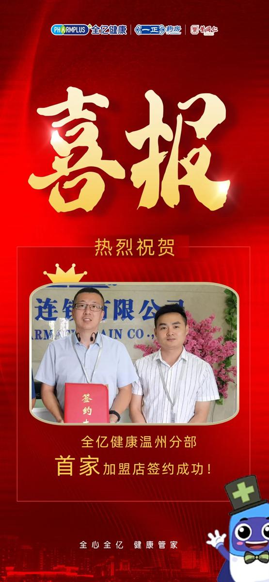 繼7月3日,全億健康溫州分部并購三德34家門店之后,全億健康再傳喜報,在7月12日第一家加盟店成功簽約!并購、加盟、自開,三駕馬車并駕齊驅(qū),進一步提升全億健康在溫州的影響力!