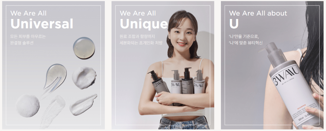 3WAAU是韓國COSMAX科絲美詩今年3月推出的定制型化妝品平臺。WAAU取自We Are All Unique的縮寫,包含了面向個人化·細(xì)分化化妝品市場的服務(wù)理念。