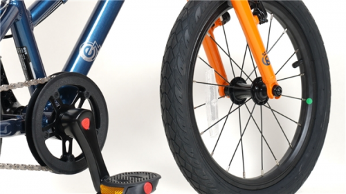 騎行起來的輕與材質無關,與腳踏的軸承和輪圈中央的花鼓關系密切,相當于自行車的發(fā)動機。我們測試優(yōu)貝小蜻蜓時,將車倒過來轉動腳踏讓車輪空轉,在沒有任何觸碰的前提下,空轉一圈到停下來將近2分15秒,而且轉動絲滑,無明顯聲音,優(yōu)貝專利密封軸承讓騎行更加順暢,蹬一圈騎的很遠,其運轉的阻力更小,所以它的靈活性就會更好,令孩子騎行更省力,這都得益于配備全鋁密封軸承花鼓。以上三點綜合來看才是兒童自行車真正的輕,家長挑選童車的時候,不要只會提起稱重量,還要把車倒過來測測車輪空轉時長。