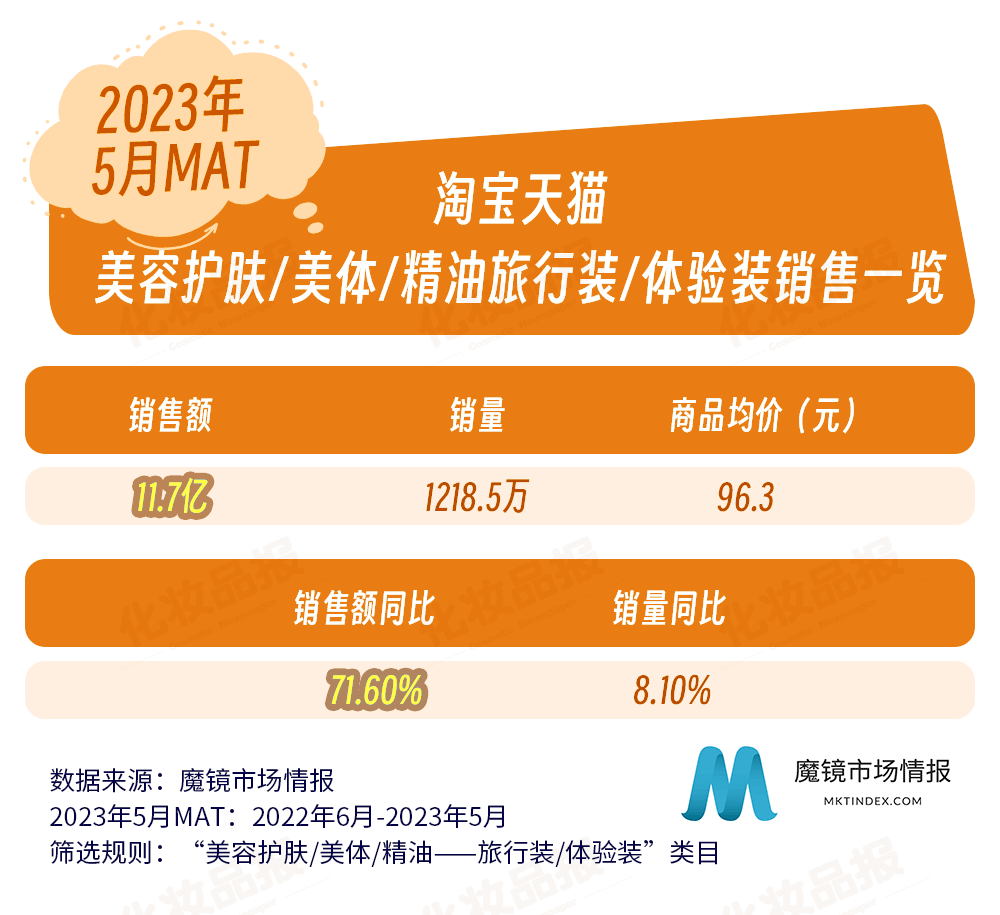 近日,國內(nèi)零售洞察公司魔鏡市場情報發(fā)布了一份關(guān)于化妝品旅行裝/體驗裝在各主流電商平臺的銷售調(diào)研報告。報告統(tǒng)計的類目主要針對彩妝、香水、美妝工具、美容護膚、美體和精油類旅行裝/體驗裝,統(tǒng)計調(diào)查的平臺涵蓋淘寶、天貓、抖音等,統(tǒng)計周期為2022年6月-2023年5月。