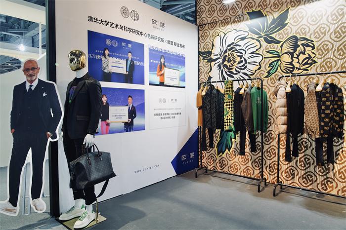 自2021年起,歐度先后4次與清華大學藝術與科學研究中心色彩研究所,聯合開展男裝用色流行趨勢專項研究,并發(fā)布色彩調研報告。這一專項研究是國內男裝領域首個針對服裝色彩應用開展的研究,對中國男裝色彩潮流趨勢和歐度產品開發(fā)設計具有重大指導意義。歐度展廳中陳列的2023秋冬新品,從單品設計到搭配陳列都符合色彩流行趨勢,遵循色彩和諧科學原理;專業(yè)且獨特的服飾配色方案,吸引了來自全國各地的時尚買手與加盟商的商務洽談。