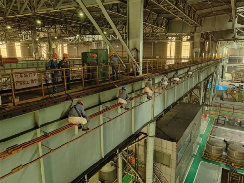 截止18點(diǎn)00分,隨著硅鋼事業(yè)部第二智慧工廠6-2行車滑線檢修項(xiàng)目一次性試車成功,標(biāo)志著第二智慧行車滑線檢修項(xiàng)目施工任務(wù)圓滿結(jié)束,刷新了滑線檢修項(xiàng)目施工最短用時(shí)的新紀(jì)錄。中冶寶鋼基層單位高度重視,開工前專業(yè)點(diǎn)檢人員積極與硅鋼事業(yè)部溝通協(xié)調(diào)停機(jī)時(shí)間,同時(shí)從班組抽調(diào)出10余名精兵強(qiáng)將參與到此次劃線檢修的施工中。施工前現(xiàn)場進(jìn)行列隊(duì)安全交底,辦理相關(guān)手續(xù),落實(shí)各項(xiàng)安全措施,嚴(yán)格執(zhí)行“三方掛牌”制度。在檢修過程中,公司結(jié)合自身特點(diǎn)和實(shí)際情況,認(rèn)真落實(shí)二級高危安全要求,作業(yè)人員佩戴和正確使用合格的“四合一”檢測儀。從安全交底的落實(shí)到安全帶的規(guī)范佩戴,從安全繩的安裝到現(xiàn)場安全的監(jiān)護(hù),對每一個(gè)環(huán)節(jié)都絲毫不敢懈怠。在克服高空作業(yè)、戰(zhàn)線長、工期緊等施工難度的同時(shí),對施工質(zhì)量也高標(biāo)準(zhǔn)嚴(yán)要求,滑線吊掛夾更換按照維修作業(yè)標(biāo)準(zhǔn),做好每一道工序每一個(gè)步驟,嚴(yán)把質(zhì)量關(guān),為檢修用時(shí)提供了有力保證,