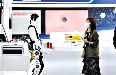 參觀者在第六屆世界智能大會上參觀天津制造業(yè)立市展。 新華社記者 趙子碩 攝