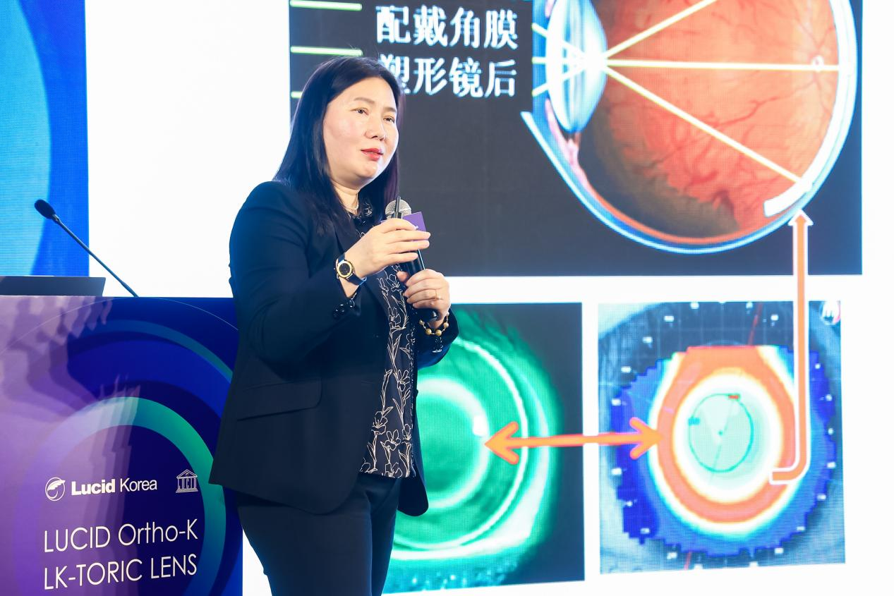 精彩致辭過(guò)后楊院長(zhǎng)首先帶來(lái)課題分享《露晰得差異化設(shè)計(jì)一近視控制效果與視覺質(zhì)量的兼顧》,從塑形鏡的控制效果和舒適度及良好視覺質(zhì)量上不同的案例進(jìn)行解析。從控制效果來(lái)看,露晰得更穩(wěn)合東方人眼球,越戴越穩(wěn)定;在所有驗(yàn)配品牌中若用MRT展示視網(wǎng)膜離焦?fàn)顟B(tài),只有露晰得才能呈現(xiàn)非常理想的離焦?fàn)顟B(tài);同時(shí)在驗(yàn)配過(guò)程中,不能把所有的產(chǎn)品趨于同性化,不能用一個(gè)標(biāo)準(zhǔn)去要求它的驗(yàn)配,露晰得Toric設(shè)計(jì)的鏡片能夠在不規(guī)則的角膜上獲得較好的定位,因此對(duì)于視覺質(zhì)量和穩(wěn)定性都比較好。