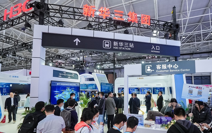 眾多行業(yè)領(lǐng)導(dǎo)蒞臨新華三展區(qū)參觀合影留念