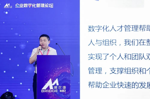 侯博士以2019年與中歐國際工商學(xué)院的忻榕教授、阿里巴巴產(chǎn)業(yè)互聯(lián)網(wǎng)中心主任陳威如教授歷經(jīng)兩年共同創(chuàng)作的《平臺化管理》一書作為理論指導(dǎo),以及多年人力資源行業(yè)經(jīng)驗(yàn)的沉淀和敏銳的市場洞察,總結(jié)構(gòu)建平臺化企業(yè)的重要性,包括小前端、強(qiáng)中臺和穩(wěn)后臺的建設(shè)。侯博士介紹了平臺化管理的五化模型:能力數(shù)字化、關(guān)系數(shù)字化、績效顆粒化、結(jié)構(gòu)柔性化、以及文化利他化。侯博士分享了博爾捷集團(tuán)的成功經(jīng)驗(yàn),鼓勵其他企業(yè)在探索和實(shí)踐中進(jìn)行數(shù)字化轉(zhuǎn)型和組織變革,以實(shí)現(xiàn)平臺化管理。