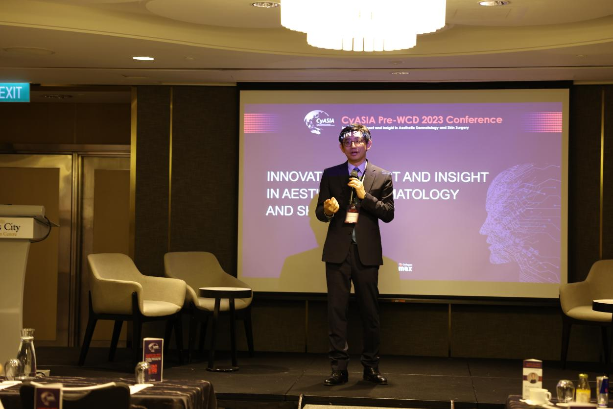 雙美生物科技股份有限公司總經理林明毅先生在大會開幕式中致辭,他代表雙美對本次WCD會前研討會的組織者黃柏翰醫(yī)師及其他各位醫(yī)師表示衷心感謝,也很榮幸能贊助這次精彩的學術活動。林先生表示:近年來,膠原蛋白填充劑市場增長迅速,越來越多的醫(yī)生和求美者被它的獨特優(yōu)勢所吸引,Sunmax雙美深耕于膠原蛋白填充產品多年,今年攜Deusaderm進入新加坡市場,相信此次通過現(xiàn)場專家們的分享與討論,一定可以使這款產品得到更多專家同道的認可。雙美同時也希望借助CyASIA Pre-WCD這個國際化平臺,與更多國際領先的專家學者分享雙美膠原蛋白的優(yōu)勢及未來發(fā)展愿景,學習和借鑒國際前沿診療技術和理念,助力雙美產品走向世界,造福更多求美者!