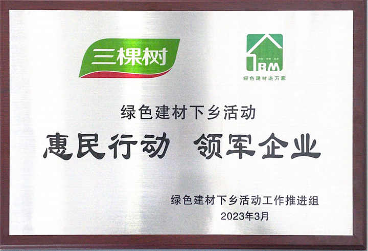 3月31日,以“綠色建材進(jìn)萬(wàn)家 美好生活共創(chuàng)建”為主題的全國(guó)綠色建材下鄉(xiāng)活動(dòng)福建站啟動(dòng)會(huì)在泉州南安舉行。三棵樹(shù)憑借綠色建材下鄉(xiāng)方面的突出貢獻(xiàn)獲得“綠色建材下鄉(xiāng)活動(dòng)-惠民行動(dòng)領(lǐng)軍企業(yè)”稱號(hào),多款綠色產(chǎn)品獲得中國(guó)綠色建材產(chǎn)品認(rèn)證證書。