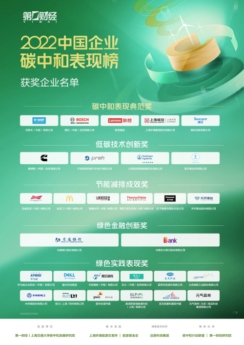 2023年4月22日下午,首屆中國企業(yè)碳中和表現(xiàn)榜頒獎(jiǎng)盛典在上海隆重舉行,29家在碳中和進(jìn)程中表現(xiàn)出色的企業(yè),分獲5大獎(jiǎng)項(xiàng)。