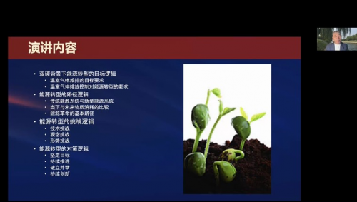 中國能源研究會(huì)常務(wù)理事、紅杉中國投資合伙人李俊峰通過視頻演講的形式,從雙碳背景下能源轉(zhuǎn)型的目標(biāo)邏輯、路徑邏輯、挑戰(zhàn)邏輯、對(duì)策邏輯等多個(gè)方面著手,分析了《能源綠色轉(zhuǎn)型的邏輯》。