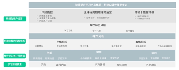 教培機(jī)構(gòu)的口碑依賴于學(xué)員對課程服務(wù)的評價(jià),因此,基于學(xué)習(xí)主體與客體的全面分析,是改進(jìn)課程、驅(qū)動學(xué)習(xí)產(chǎn)品體驗(yàn)升級的重要依據(jù)。
