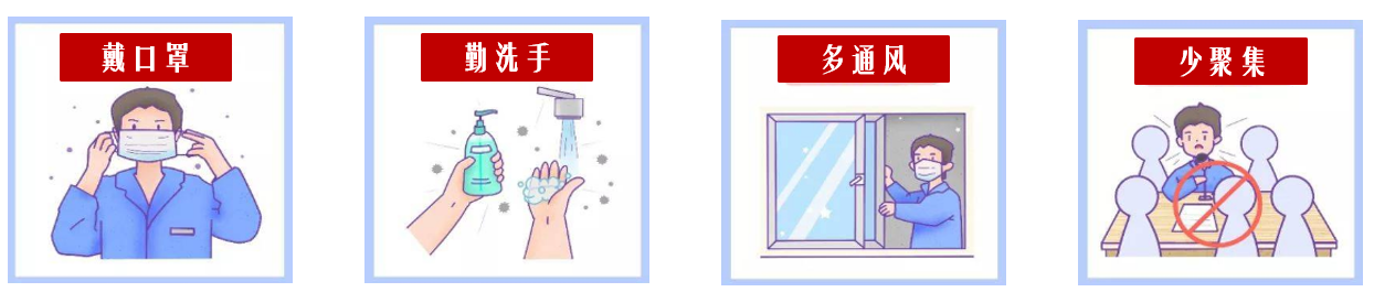 (1)戴口罩、勤洗手、多通風、少聚集:這是預防呼吸道傳染病的通用法寶,一定要牢記心間,付諸行動。