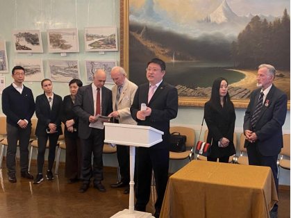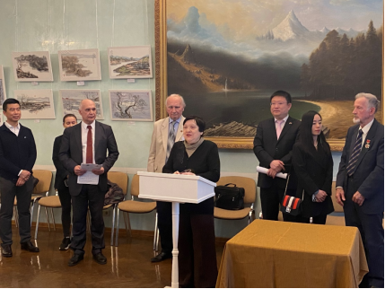 中俄人文合作發(fā)展中心理事長尹斌先生在發(fā)言中談到:“藝術(shù)家劉子輿先生在莫斯科生活多年,在此期間,他給很多俄羅斯人傳授中國的水墨,為發(fā)揚(yáng)中國文化作出了巨大貢獻(xiàn)?!?/p>