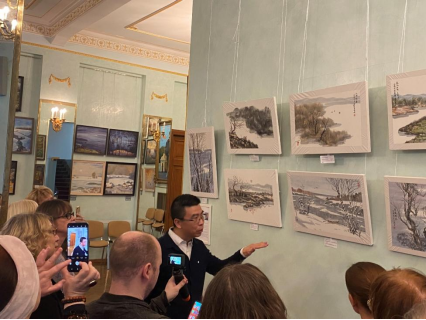 日前,由中俄人文合作發(fā)展中心和俄羅斯國家科學(xué)院文化藝術(shù)中心聯(lián)合主辦的“思考自然之美——?jiǎng)⒆虞涀髌氛埂?#xff0c;正在莫斯科俄羅斯國家科學(xué)院文化藝術(shù)中心舉行,展期截止到4月5日。中國畫家劉子輿,受邀走進(jìn)俄羅斯國家科學(xué)院“大師課堂”講授中國繪畫。據(jù)悉,本次展覽展出的是劉子輿近期創(chuàng)作的作品,即用中國水墨描繪了莫斯科的雪景、森林以及蜀葵、棉花、蒲公英、土豆、地黃等花卉。據(jù)悉,俄羅斯觀眾見到這些精彩的中國水墨作品,驚嘆不已,紛紛拍照留念。