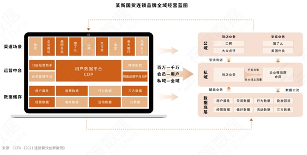 進一步來看,國貨連鎖餐飲品牌需加強場景洞察能力,主要體現在客戶分層和客戶運營場景提煉上;餐飲行業(yè)對線下觸點強管控,天然具有將線下客戶向線上遷移的優(yōu)勢,因此善于用戶運營;國貨餐飲品牌在數據驅動思維和數據反饋閉環(huán)的建立上還有較大的提升空間。