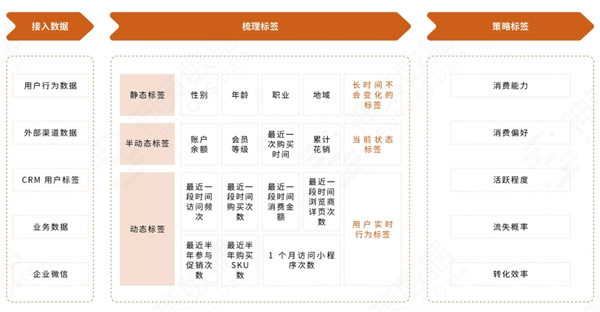4、消費者全生命周期運營的基礎是構建動靜結合的全域會員用戶標簽體系,顆粒度越細,越容易產生更好的落地效果。
