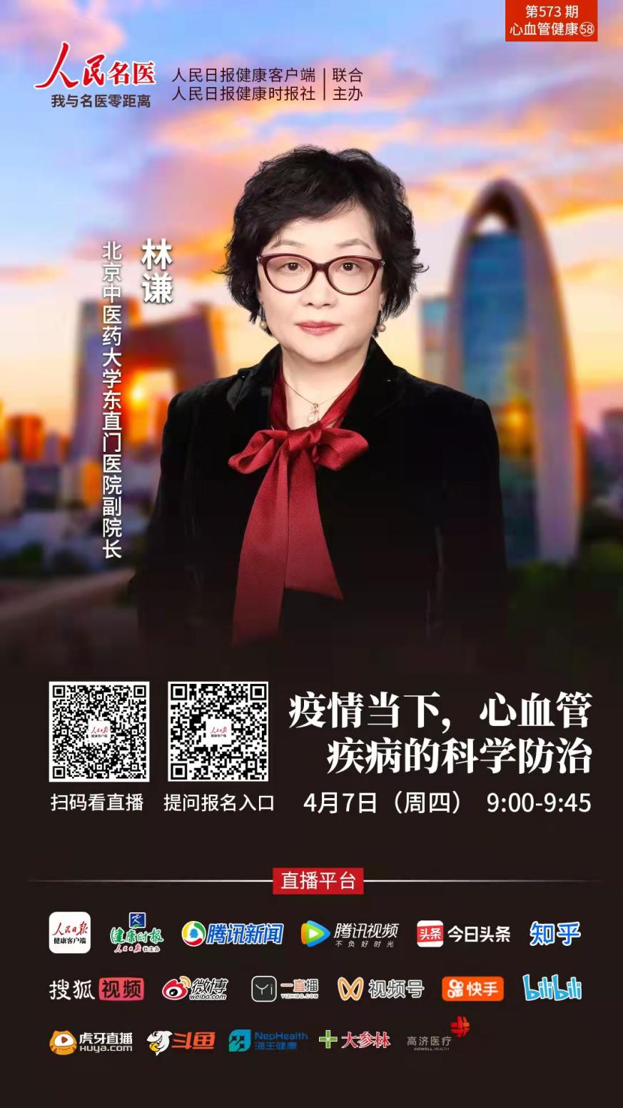 4月7日上午9:00~9:45,以嶺藥業(yè)聯(lián)合人民日報健康客戶端策劃的世界健康日直播訪談節(jié)目《疫情當(dāng)下,心腦血管疾病的科學(xué)防治》,特別邀請到北京中醫(yī)藥大學(xué)東直門醫(yī)院副院長林謙為大家進(jìn)行權(quán)威解答!