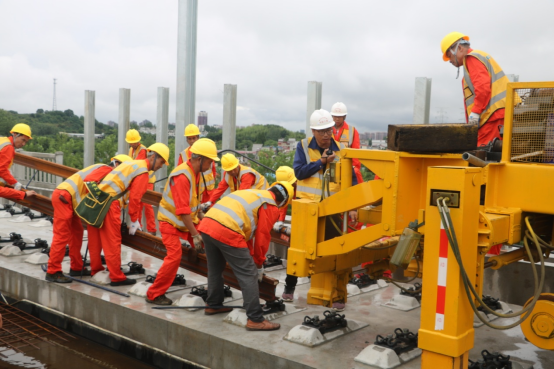 在無(wú)砟軌道施工中,為了達(dá)到零沉降、零缺陷的施工要求,項(xiàng)目部采取先試驗(yàn)后全面施工的方式,創(chuàng)新工裝工藝工法,卡控各項(xiàng)指標(biāo),嚴(yán)格控制無(wú)砟軌道外觀質(zhì)量,僅用三個(gè)多月時(shí)間就完成了單線64.6公里的無(wú)砟軌道施工和32公里的封閉層施工,施工進(jìn)度全線第一。